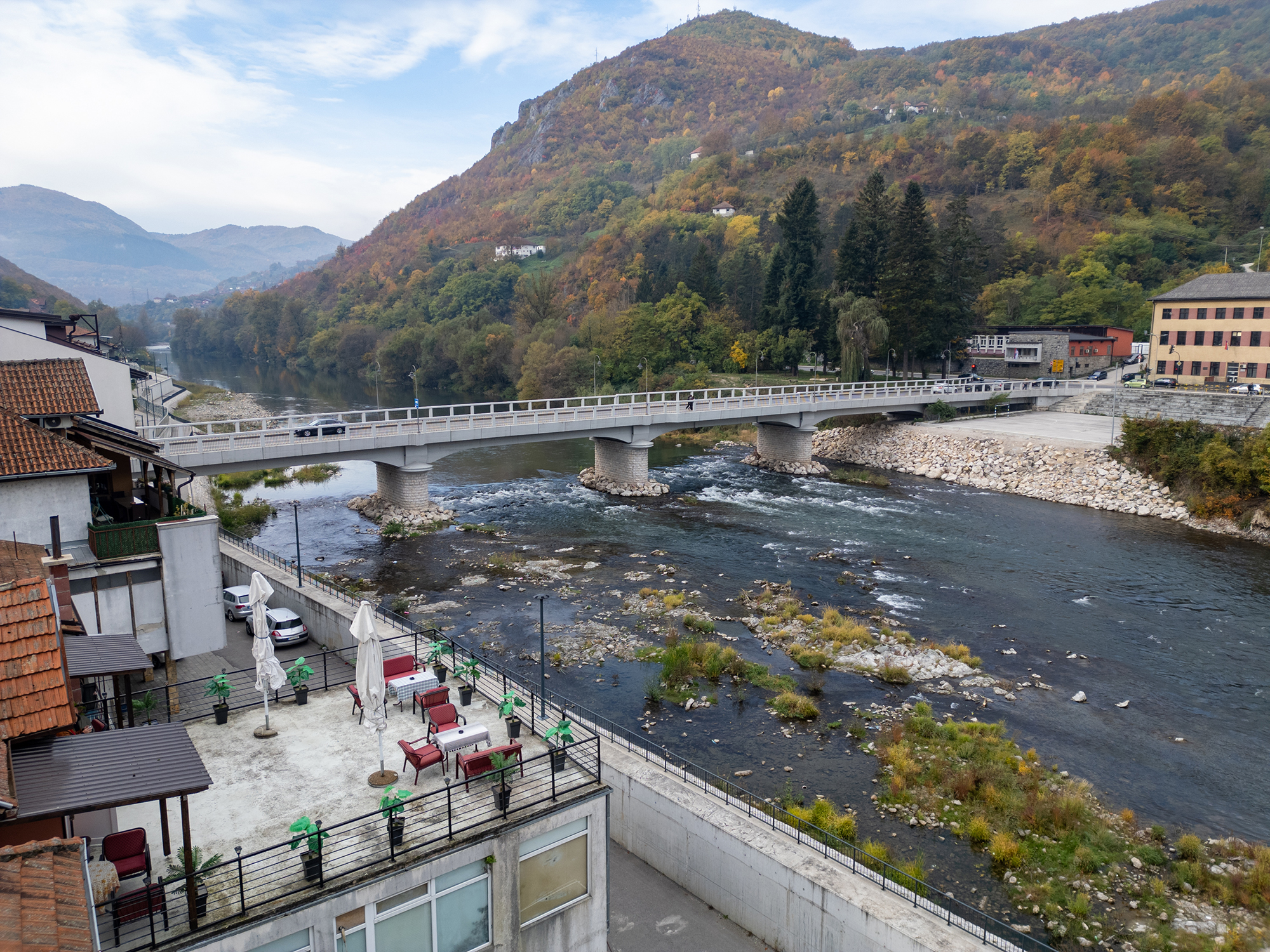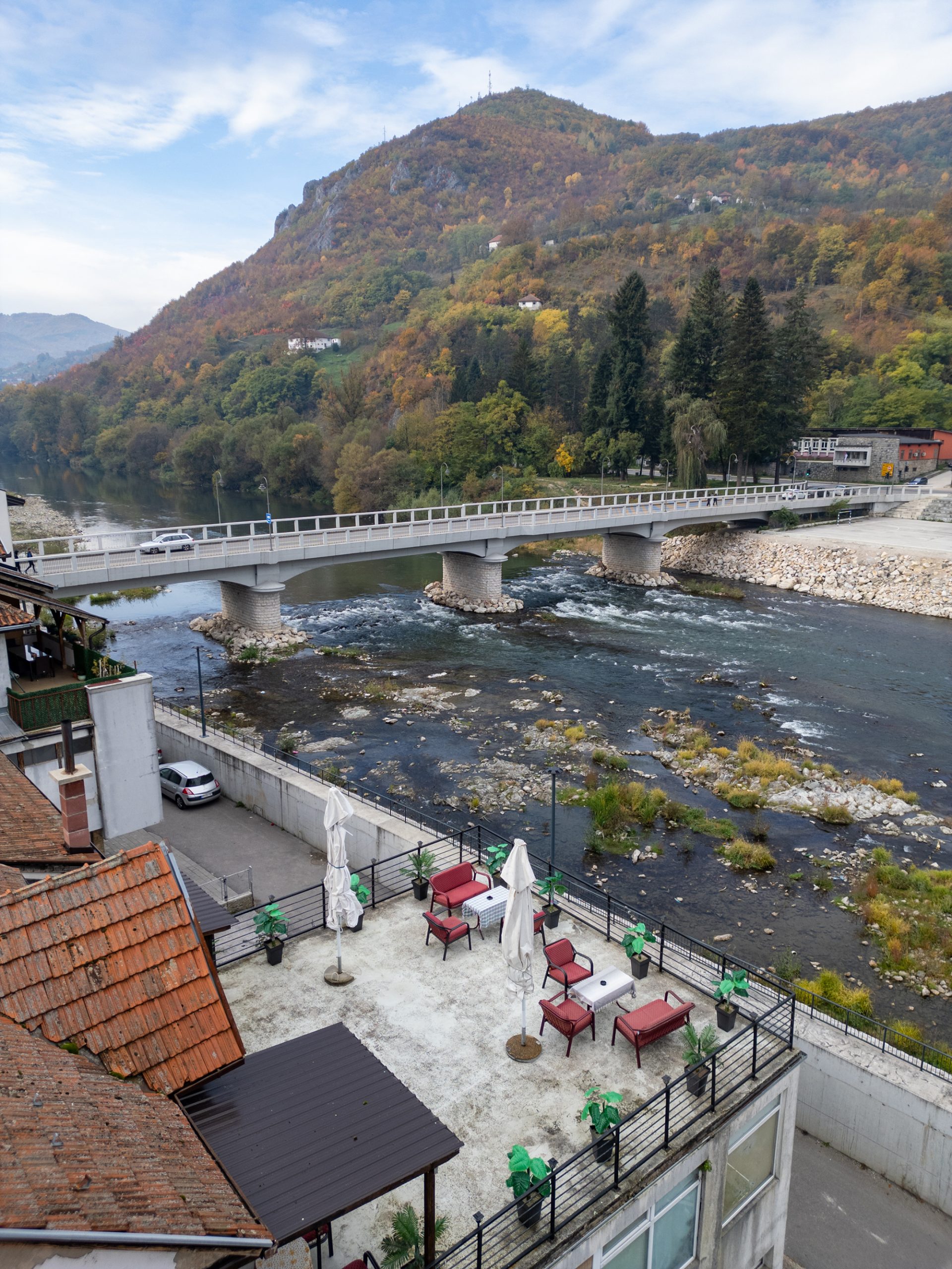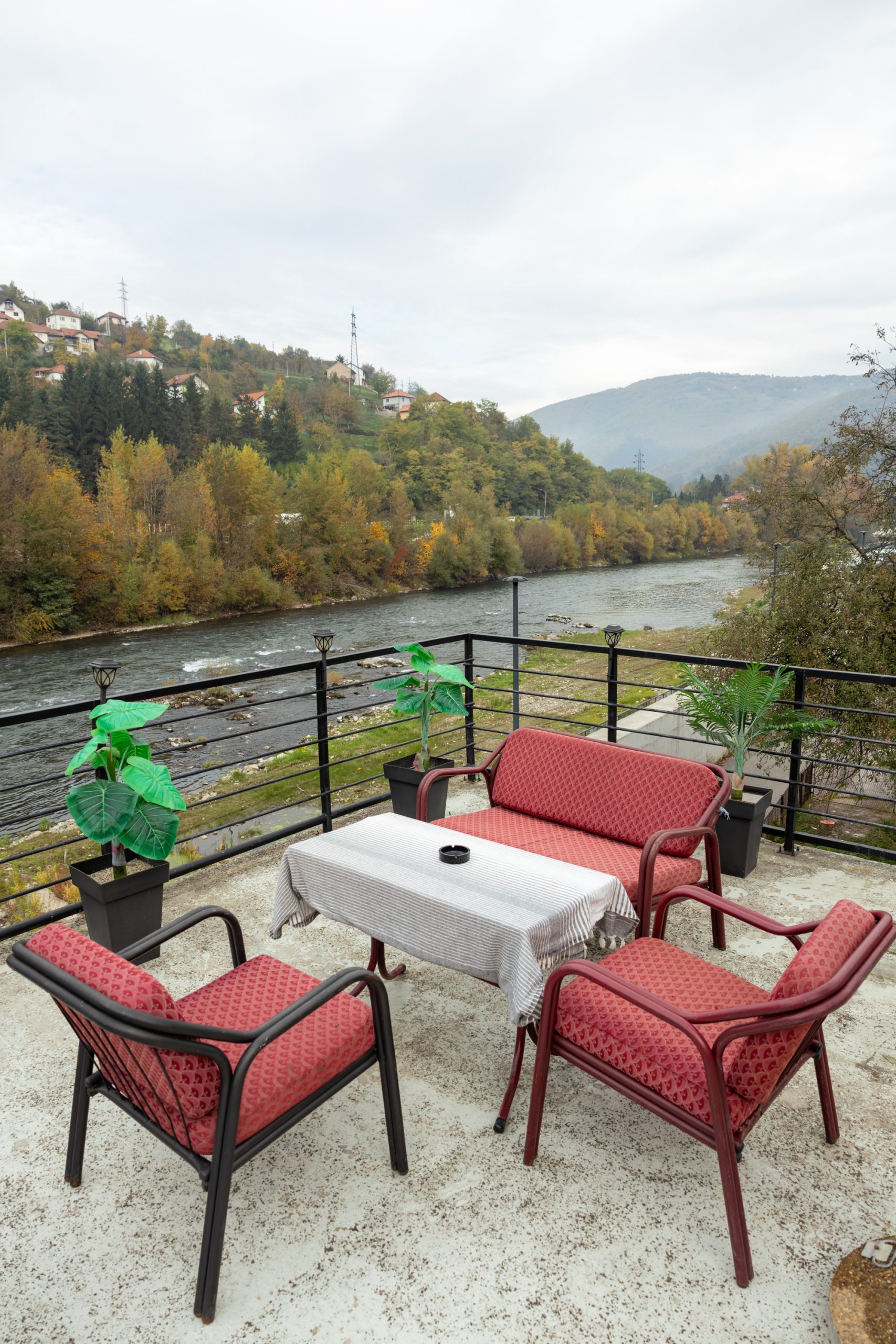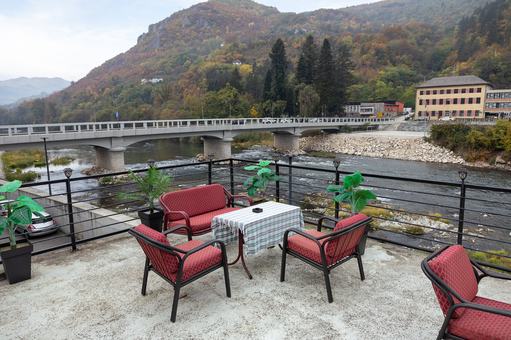 Пространа тераса са погледом на реку Лим пружа пријатан амбијент за јутарњу кафу, опуштање након обиласка града или једноставно уживање у споју природног пејзажа и градског живота.