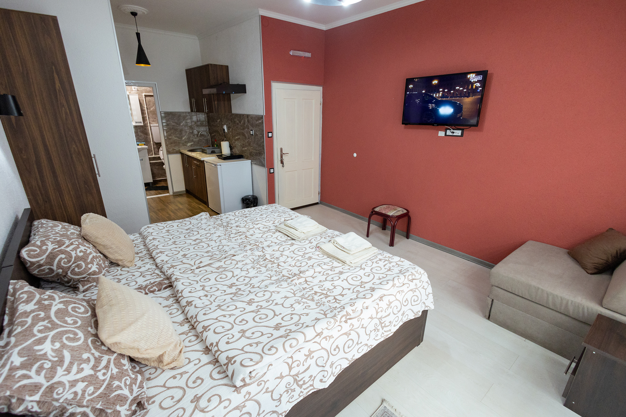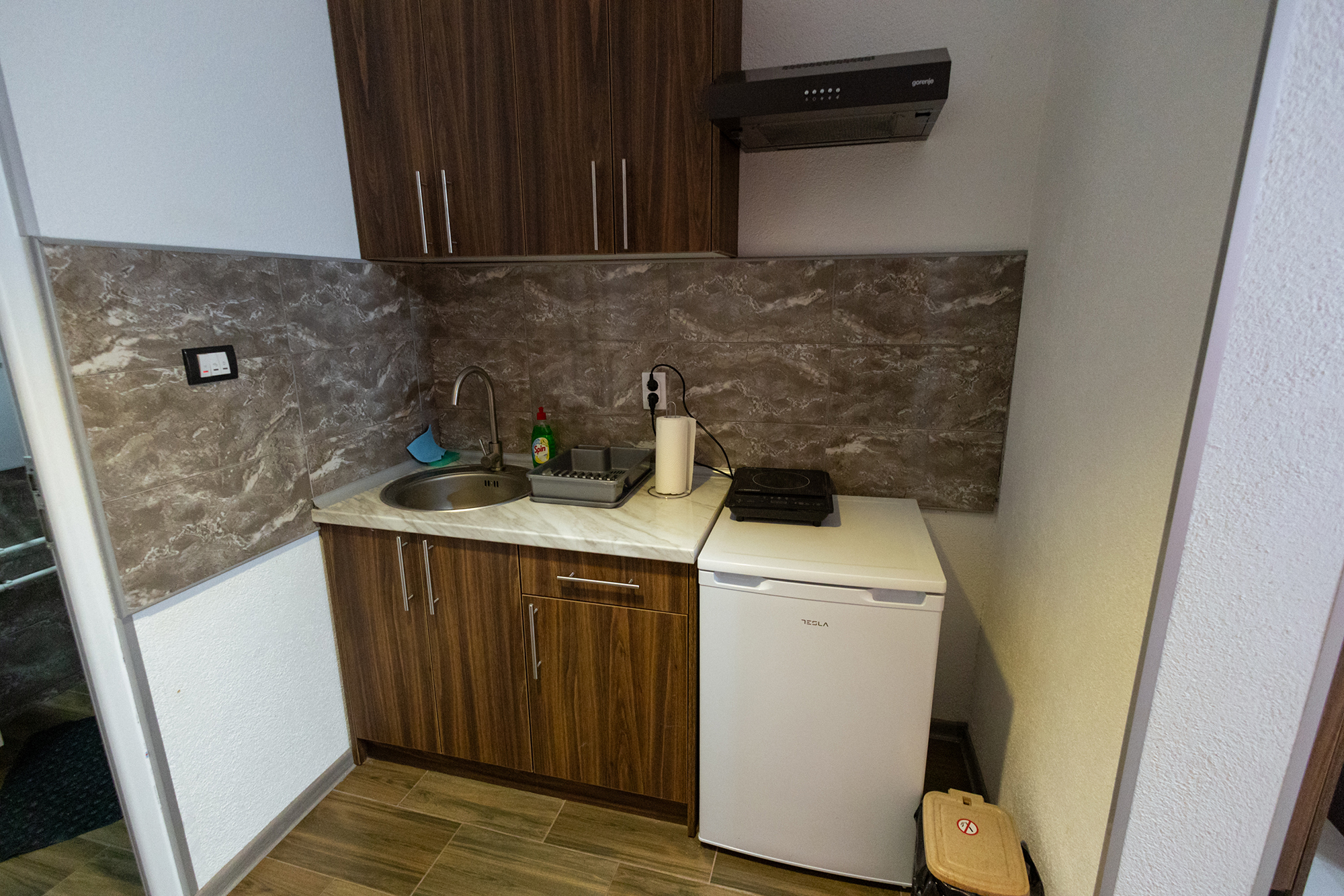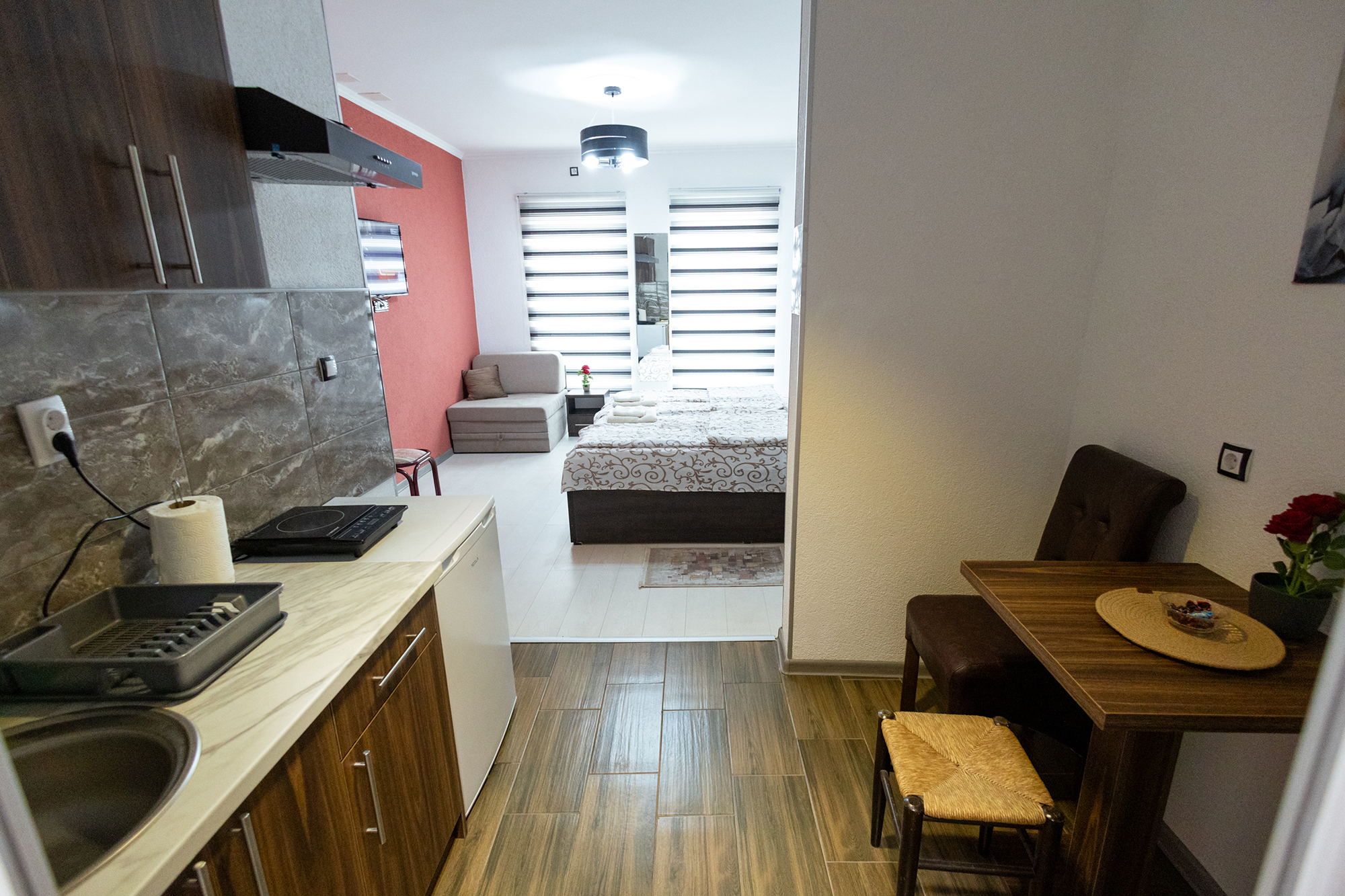 Сваки апартман је опремљен са лежајним капацитетом за две особе и кухињом за самосталну припрему хране, што гостима омогућава потпуну слободу и комфор током боравка.
